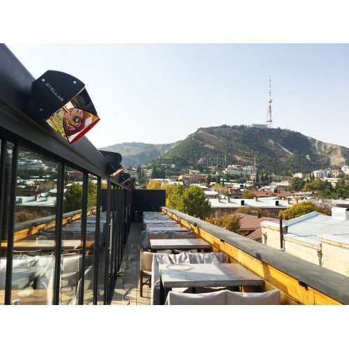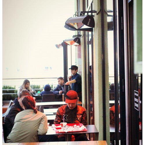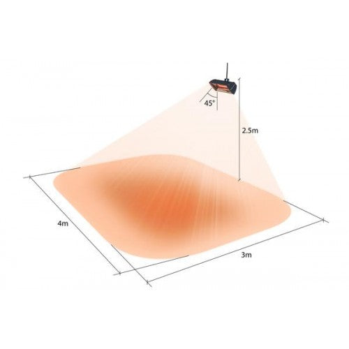 Fabriqué en acier inoxydable thermolaqué, il est totalement étanche grâce à son indice de protection IP66 et équipé d'une puissante lampe de 2 000 W à faible éblouissement . Celle-ci permet de ressentir une chaleur intense jusqu'à 4 mètres de distance en quelques secondes, tandis que la lueur rouge disparaît presque complètement.